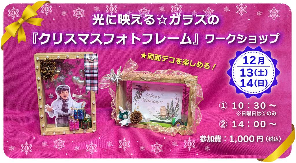 12/13土&14日開催!光に映える☆ガラスの『クリスマスフォトフレーム』ワークショップ
