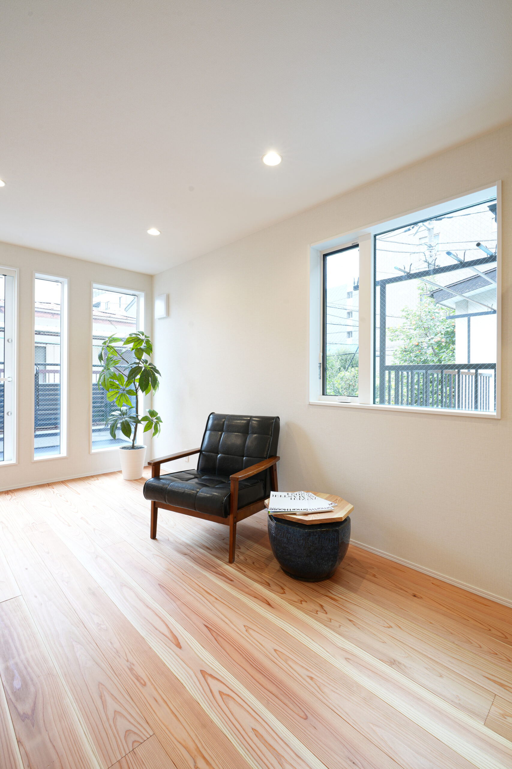 思い出の火鉢に合わせて無垢材で天板を製作し、リビングで使うサイドテーブルとして活用。