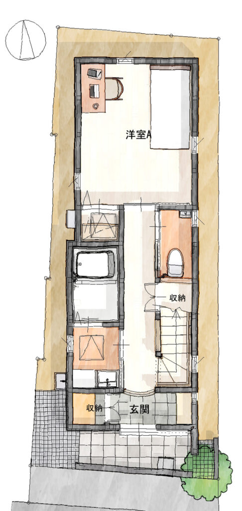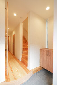 スイッチや手すりの位置、手触りや足触り、動線の自然さ。その一つひとつに気を配り、狭小住宅であっても窮屈さを感じさせない設計を目指しました。
