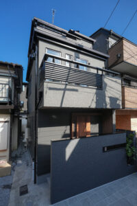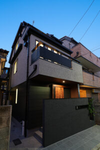 新しい住まいは、建築面積が減る狭小地ながら3階建て準耐火建築とし、耐震等級3+制振構造を備えました。