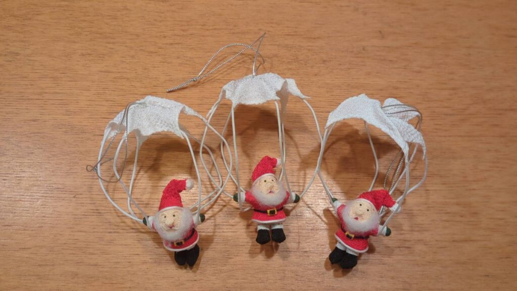 今年はFlying Tigerでもパラシュートサンタがお目見えしていました!こっちは大きいです。フニャっとした体と、ちょっぴり内股が可愛いですね(^^)