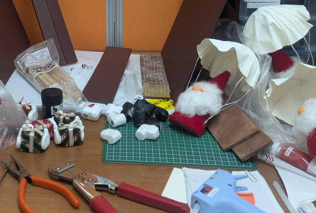 サンタは以前制作したスキーをしているサンタを分解して再利用。