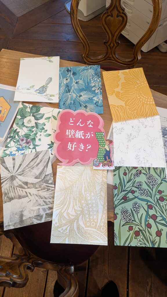壁紙も「こんな楽しい♪」「個性的な柄もある♪」ことをお知らせしたく、展示することを企画しました(^^)