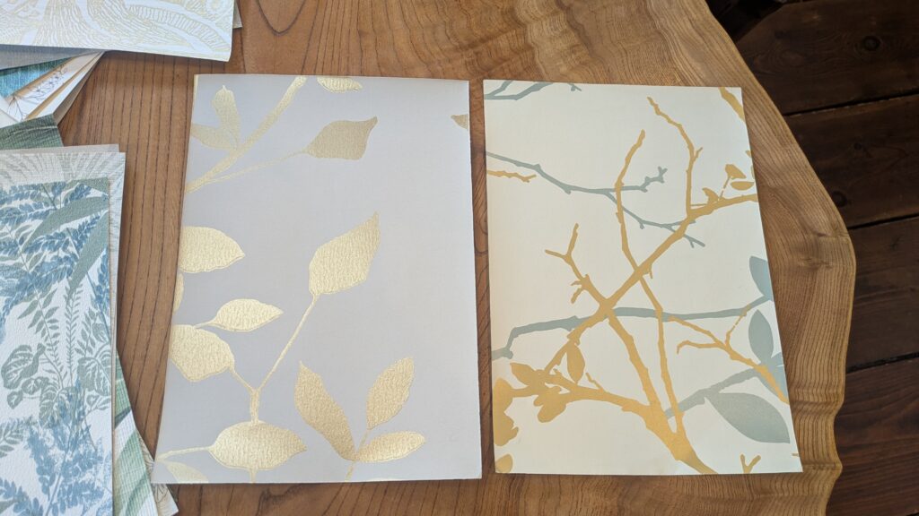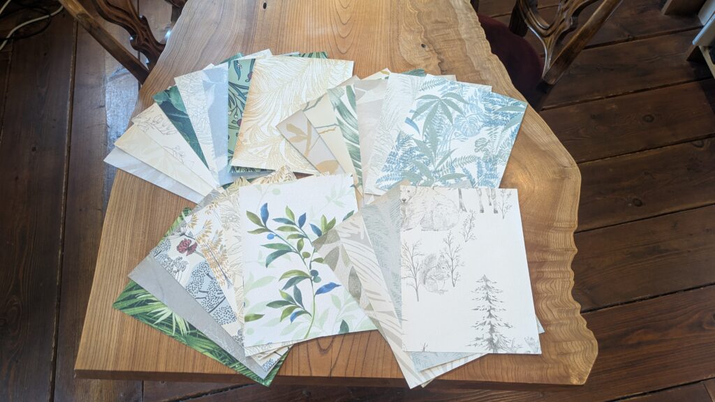 以前、お施主様へご提案するため取り寄せた壁紙のサンプルが複数あり、