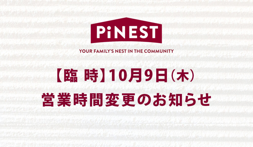 【臨時】10月9日(木)営業時間変更のお知らせ