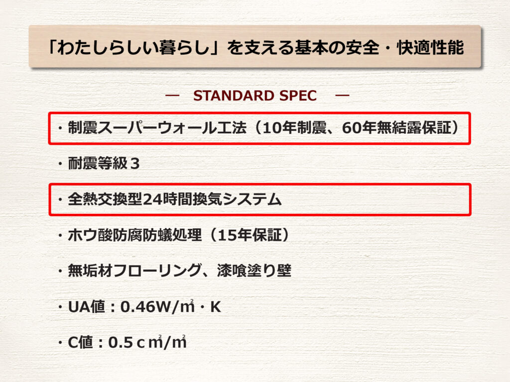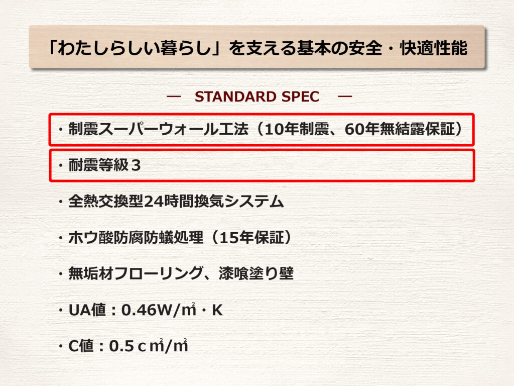 ピネストではスーパーウォール工法を採用し、耐震等級3と優れた制震性を実現します。 硬質ウレタンパネル(スーパーウォール)と制震テープを使用することによって、壁・床・天井の6面体で外からの強い力に耐える「モノコック構造」と […]